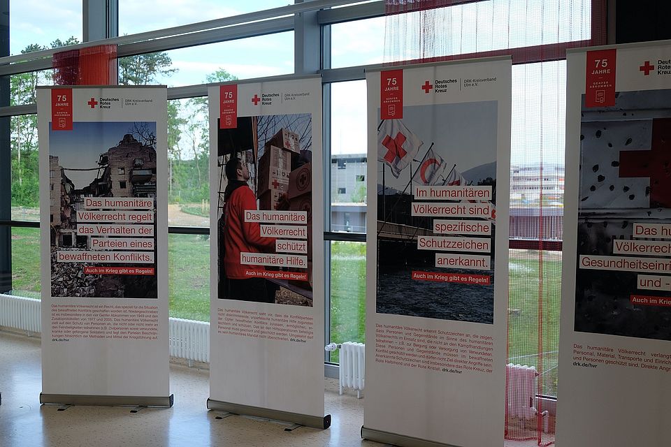 Schutz von Zivilbevölkerung und zivilen Objekten, von Verwundeten und Kriegsgefangenen bilden das Kernstück der Genfer Abkommen und damit des Humanitären Völkerrechts, unterzeichnet von 196 Staaten. Eine Ausstellung des Roten Kreuzes im Bundeswehrkrankenhaus Ulm geht auf die Grundsätze, die Geschichte und Gegenwart des Humanitären Völkerrechts ein.